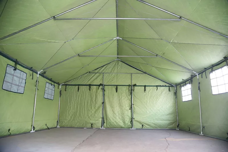 ʻO ka hoʻonohonoho maʻamau o ka 5 × 6m Construction Tent e loaʻa i nā puka ʻelua a me nā puka makani ʻeono, e hoʻomaʻamaʻa i ke komo ʻana o nā limahana, nā kukui kūlohelohe a me ka holo ʻana o ka ea. Hoʻohana ʻia nā puka makani i kahi hoʻolālā grid-patterned me nā pale kūʻokoʻa, hiki i ka hoʻokele zoned e like me nā pono hana.